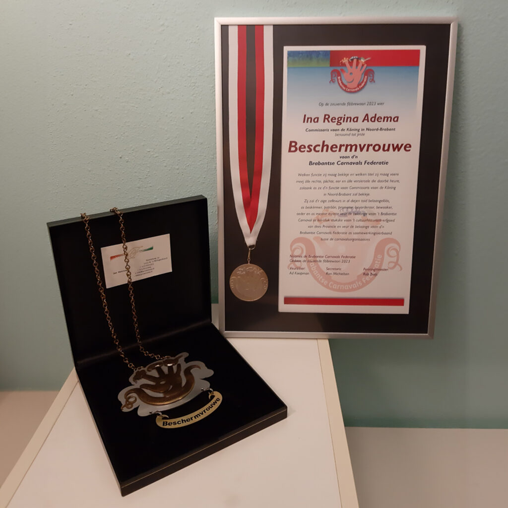 Op 7 februari 2023 werd de Commissaris van de Koning in Noord-Brabant, mr. Ina Adema, in navolging van haar voorganger prof. dr. Wim van de Donk, benoemd tot beschermer (Beschermvrouwe) van de Brabantse Carnavals Federatie. Bij deze gelegenheid ontving zij een oorkonde en de daarbij behorende draagversierselen.